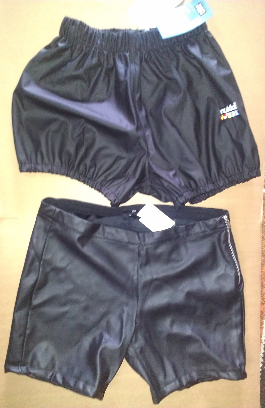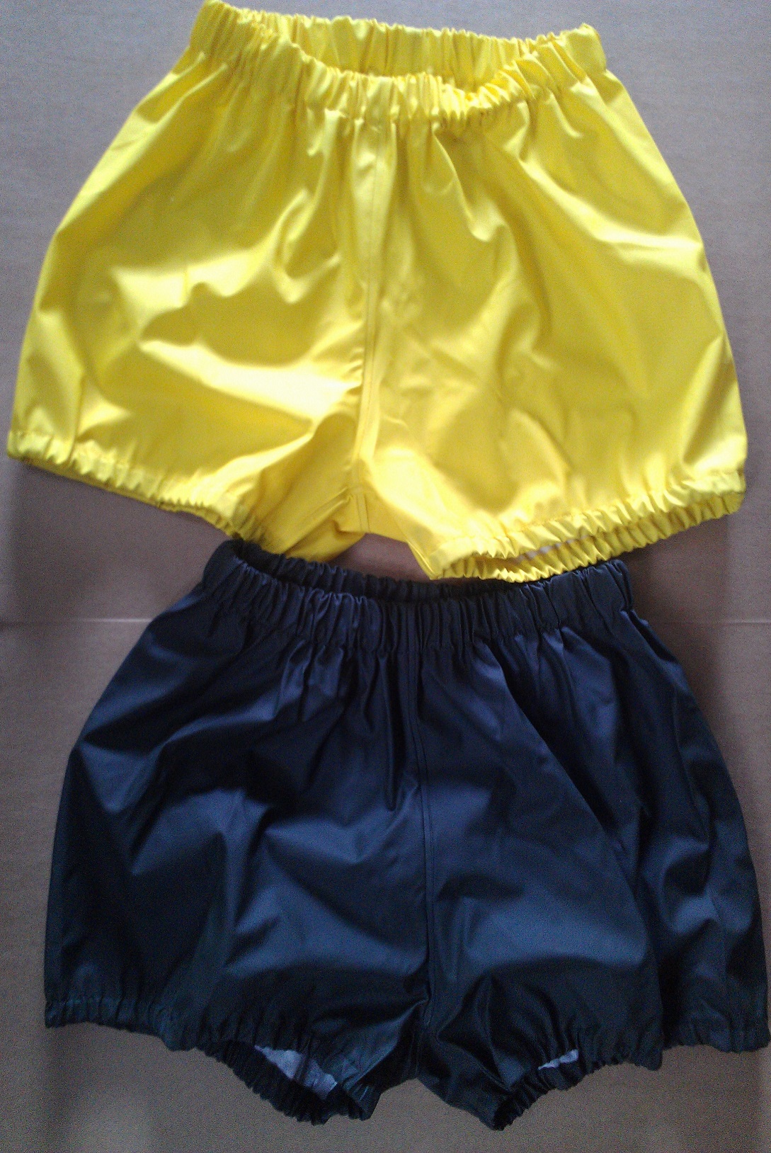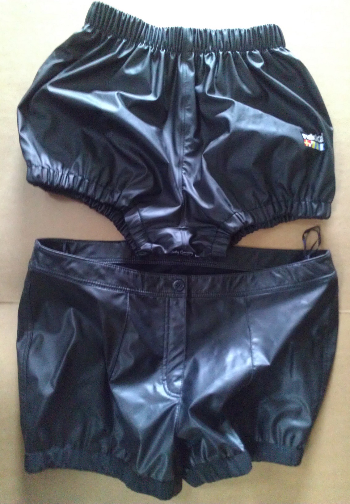 Da ich noch immer keine tauglichen Lackshorts zu diesem Zweck gefunden habe, mussten für die neuste Serie wieder Regenhosen aus Freisennerzstoff herhalten.