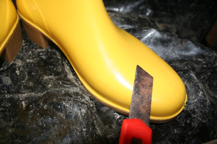 Hier nochmals der Einsatz eines groben Werkzeugs zur Gummistiefelbearbeitung.