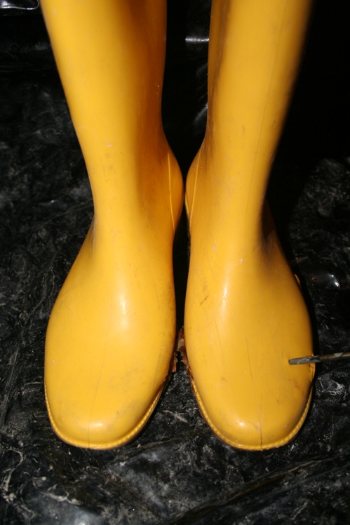 Gelbe Phönix Gummistiefel auf dem Weg von neu zu nicht mehr zu gebrauchen. (5)