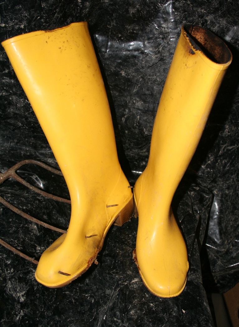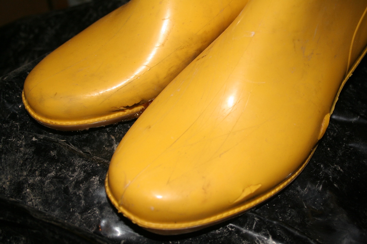 Gelbe Phönix Gummistiefel auf dem Weg von neu zu nicht mehr zu gebrauchen. (3)