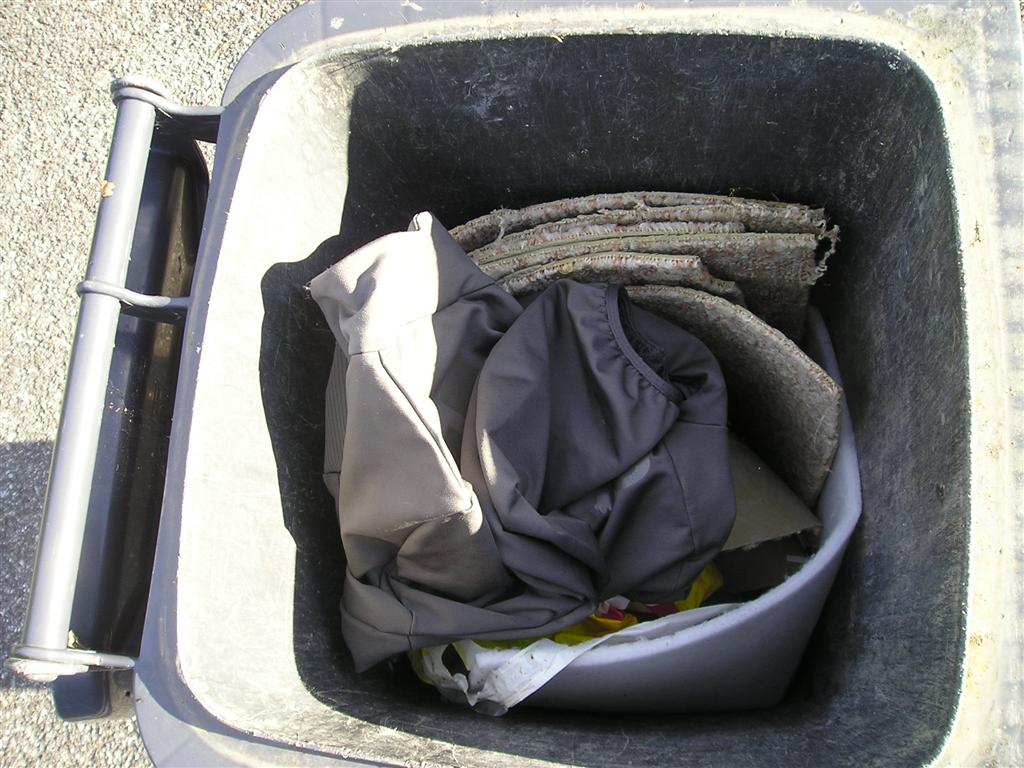 Mülltonnen und -container, Müllschlucker, Sperrmüll, Müllabfuhr, Müllpressen, Müllkippen, Müllverbrennung, Altkleidersammlung und Verschrottung.