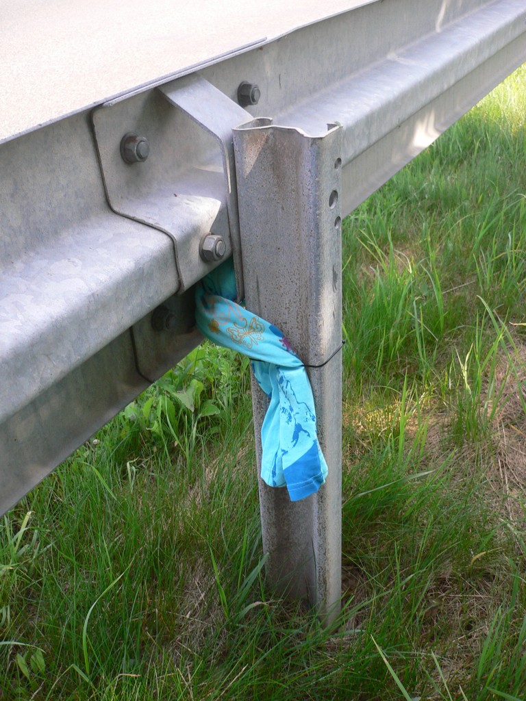 Dann hab ich Anfang Sommer noch ein neues Hannah Montanna Kindershirt an die Leitplanke einer viel befahrenen Straße gehangen. Leider war es nach ein paar Wochen von Mäharbeitern mitgenommen wurden :evil: